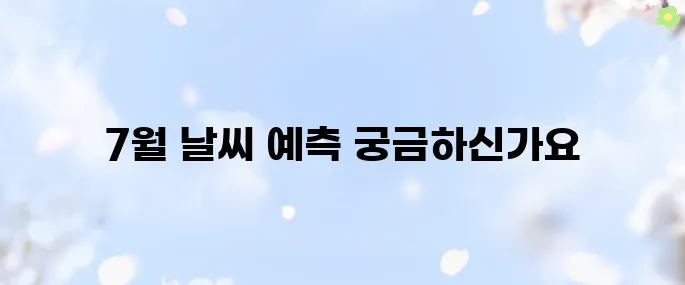 여러분, 안녕하세요! 7월이 다가오고 있습니다. 여름 하면 더위와 관련된 날씨가 떠오르죠. 그래서 이번 포스트에서는 7월 날씨 전망에 대해 상세히 알아보도록 하겠습니다. 7월의 날씨는 더위와 습도, 그리고 예기치 않은 소나기와 같은 요소로 가득 차 있습니다. 그래서 여름을 준비하며 미리 날씨를 체크하는 것이 중요합니다. 그럼 본격적으로 7월 날씨 전망 최신판 이것만 보세요를 시작해 볼까요?